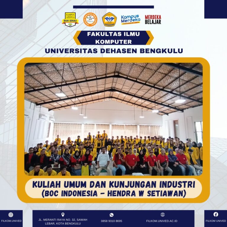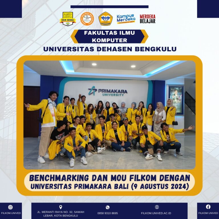 Bengkulu, 16 Agustus 2024 – Fakultas Ilmu Komputer Universitas Dehasen Bengkulu turut memeriahkan perayaan Hari Ulang Tahun (HUT) Kemerdekaan Republik Indonesia yang ke-79 dengan menggelar berbagai rangkaian acara. Acara tersebut dilaksankan selama dua hari rabu (14/8) hingga kamis (15/8) dan…