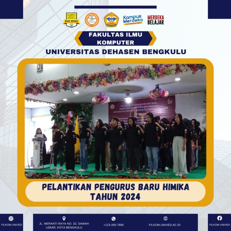 Bengkulu, FilkomUnived – Ketua Program Studi Sistem Informasi Fakultas Ilmu Komputer Universitas Dehasen Bengkulu (FILKOM UNIVED) Indra Kanedi, S.Kom., M.Kom., secara resmi membuka musyawarah besar Himpunan Mahasiswa Sistem Informasi (HIMASI) di Kampus 3 Air Sebakul Universitas Dehasen Bengkulu, Minggu (03/03/2024).…