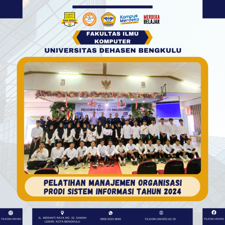 Bengkulu, 01 Oktober 2024 – Program Studi Sistem Informasi (Prodi SI) menggelar Pelatihan Manajemen Organisasi (PMO) pada Selasa, 01 Oktober 2024 di Aula lantai 4 Kampus I UNIVED Bengkulu. Kegiatan ini bertujuan untuk meningkatkan kompetensi dan keterampilan berorganisasi bagi para…