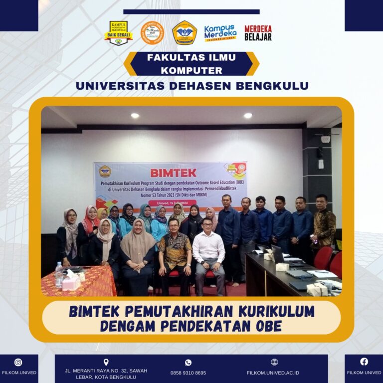 Filkom,UNIVED – Pada Senin, 29 Juli 2024 Prodi Rekayasa Sistem Komputer (RSK), Fakultas Ilmu Komputer, Universitas Dehasen Bengkulu telah melaksanakan rapat pembentukan visi misi dan kurikulum prodi. Rapat ini dipimpin oleh Bapak Hendri Alamsyah, M.Kom selaku Kaprodi RSK dan dihadiri…